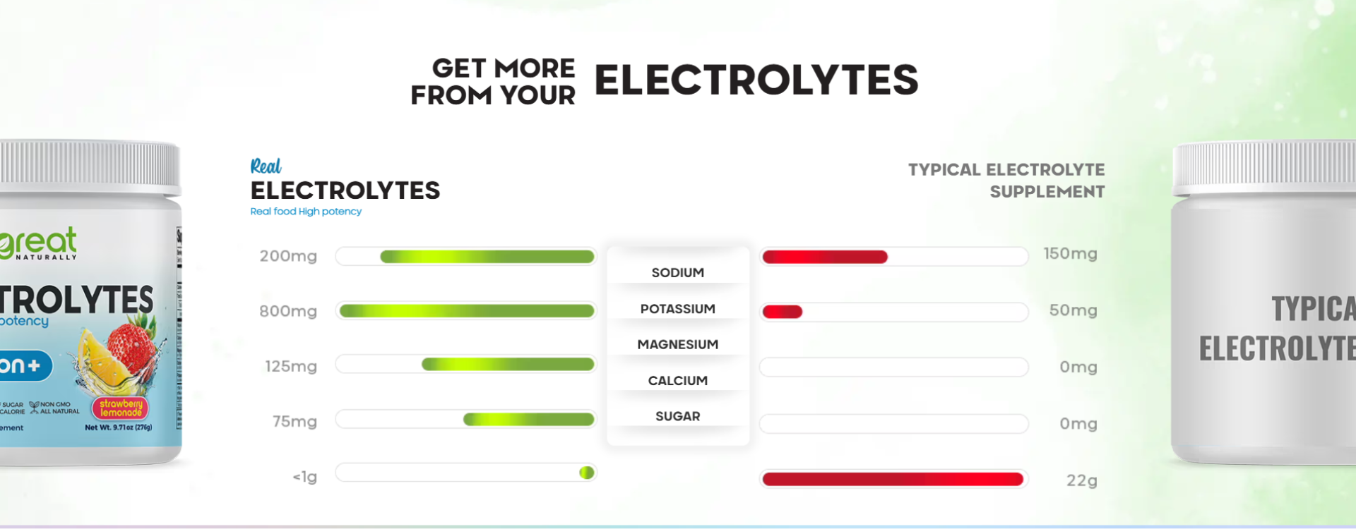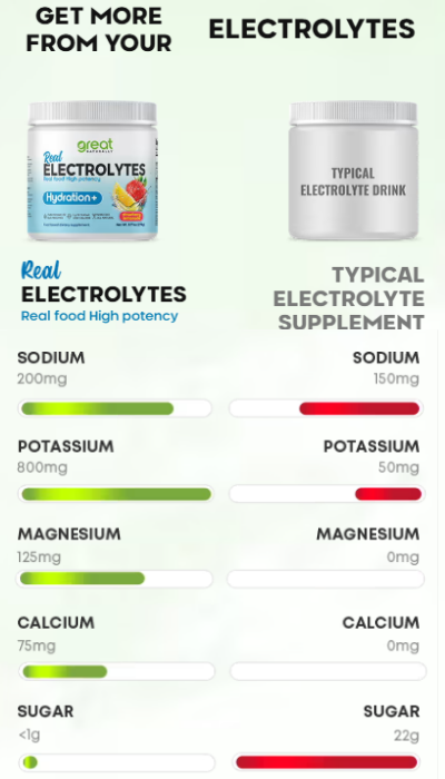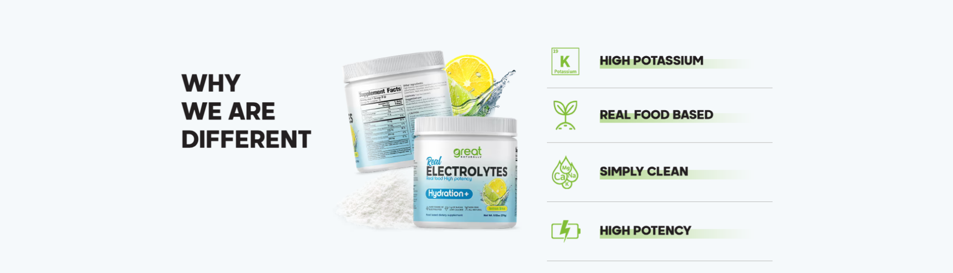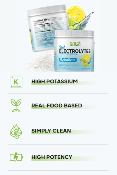 Real Electrolytes is a next generation Electrolyte Blend from Great Naturally that features High Potency doses of premium minerals and Real Food powders to deliver a great tasting drink to keep you well hydrated and bring balance and recovery back to your mineral consumption.