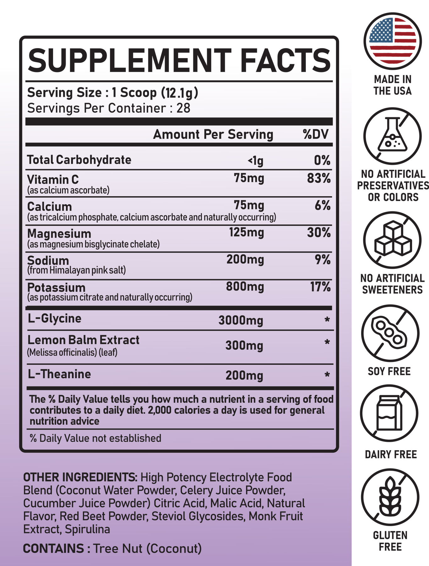 Glycine in Relax+ contributes to antioxidant protection and enhances sleep quality without causing drowsiness. Glycine aids in the production of glutathione, a key antioxidant that helps neutralize free radicals and reduce oxidative stress. This supports cellular health and defends against oxidative damage. Additionally, glycine promotes better sleep by fostering relaxation and supporting natural sleep cycles, all while maintaining alertness during the day. Integrate Relax+ into your routine to enjoy glycine’s benefits for antioxidant defense and restful sleep without the risk of daytime drowsiness.